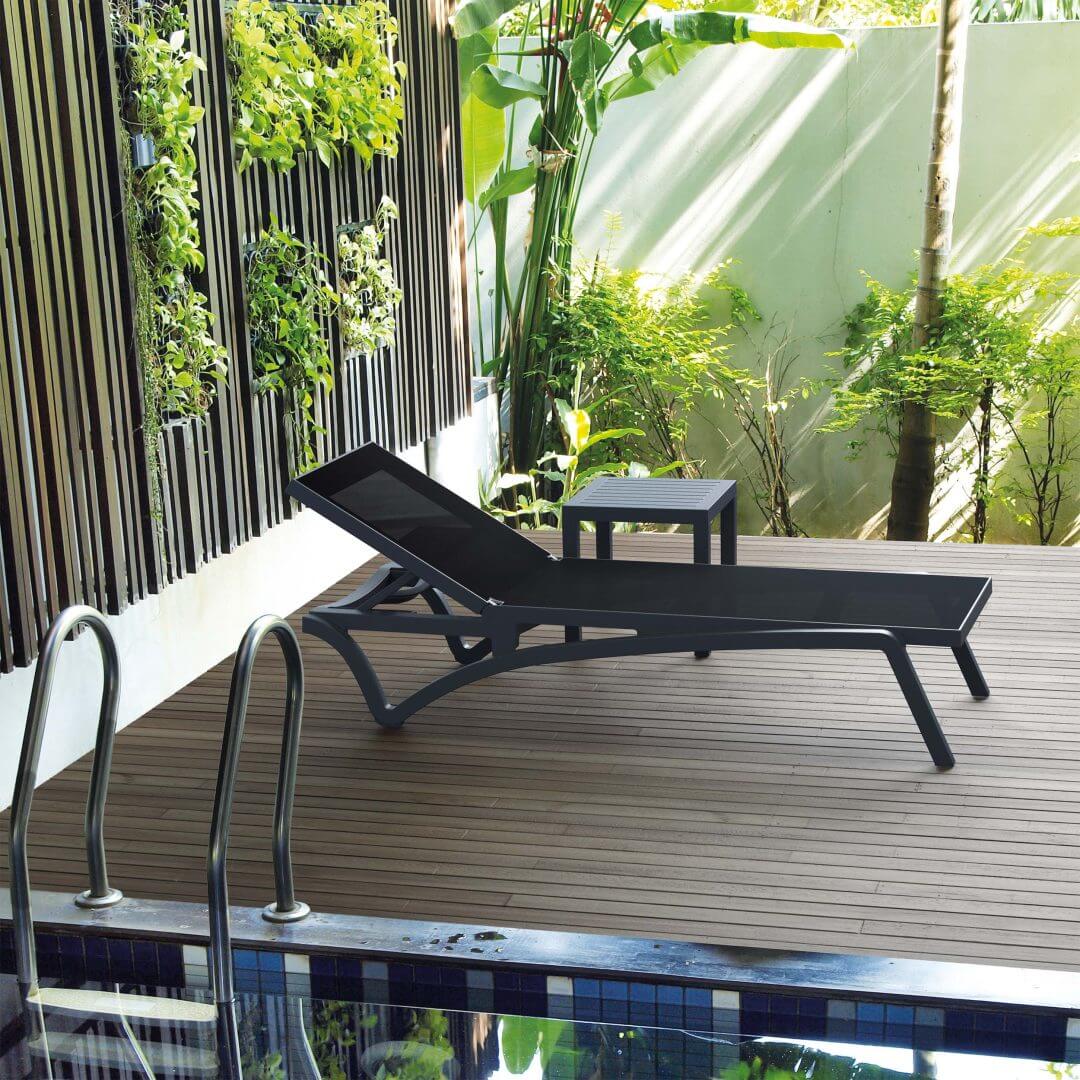 Adaugă un plus de stil și confort spațiului tău exterior cu șezlongul Negru, o alegere elegantă pentru relaxare în aer liber.