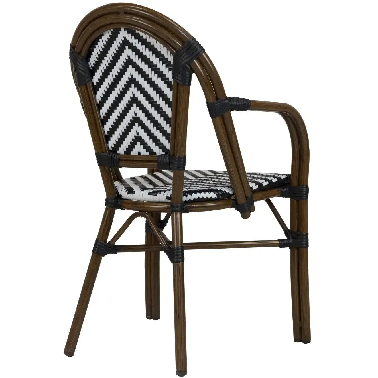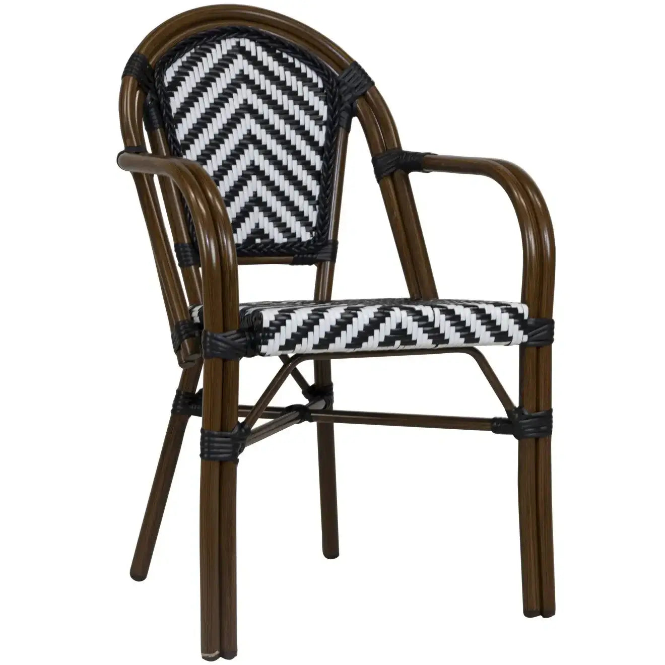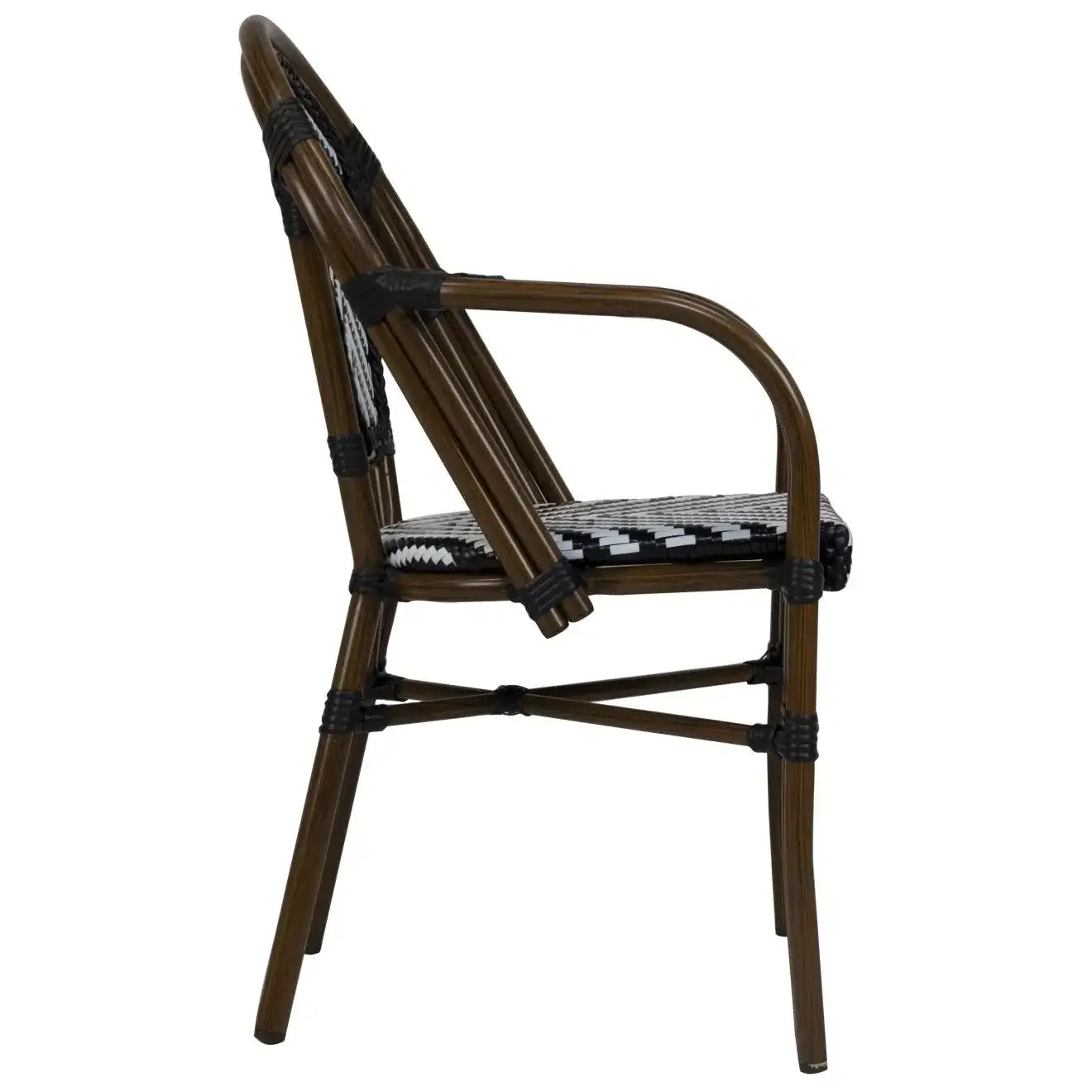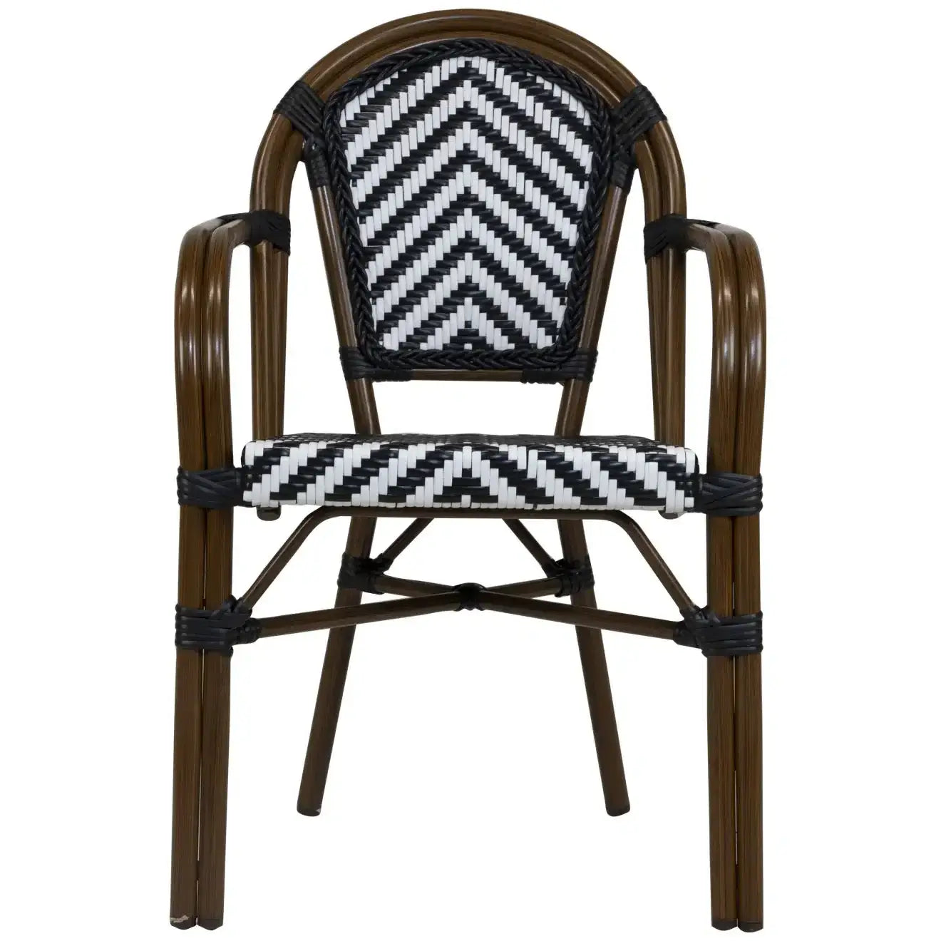 Scaun de terasă stivuibil – Cadru aluminiu cu aspect bambus și împletitură alb-negru în formă de V